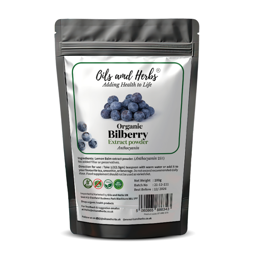Enjoy the natural power of our Organic Bilberry Extract Powder, made with care and standardised to contain over 25% anthocyanins. This high-quality powder is free from sugar, artificial colours, and flavours—making it a clean and pure choice to support your daily routine.