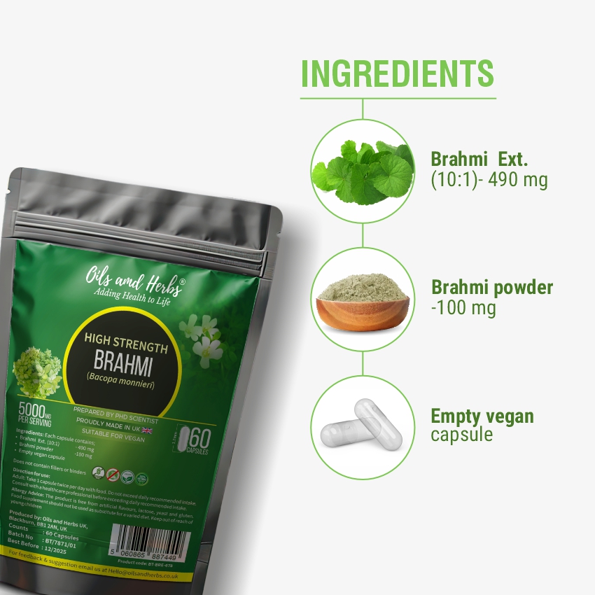 - Brahmi capsules may offer cognitive enhancement, stress reduction, neuroprotection, anti-inflammatory effects, improved learning abilities, antioxidant support, and mood regulation.