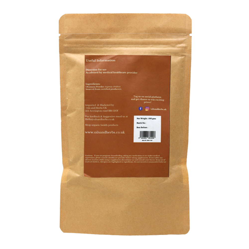 Dhamasa Powder is one of the most beneficial herbs. It is native to India and has been used in herbal medicine for centuries. The botanical name is Fagonia Arabica