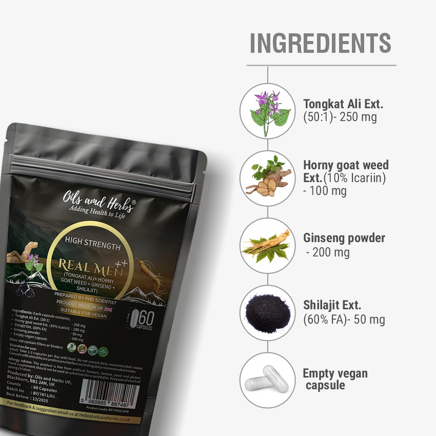 Our supplement combines Shilajit, Ginseng, Tongkat Ali, and HGW, which are known to enhance energy levels, stamina, and overall vitality.
