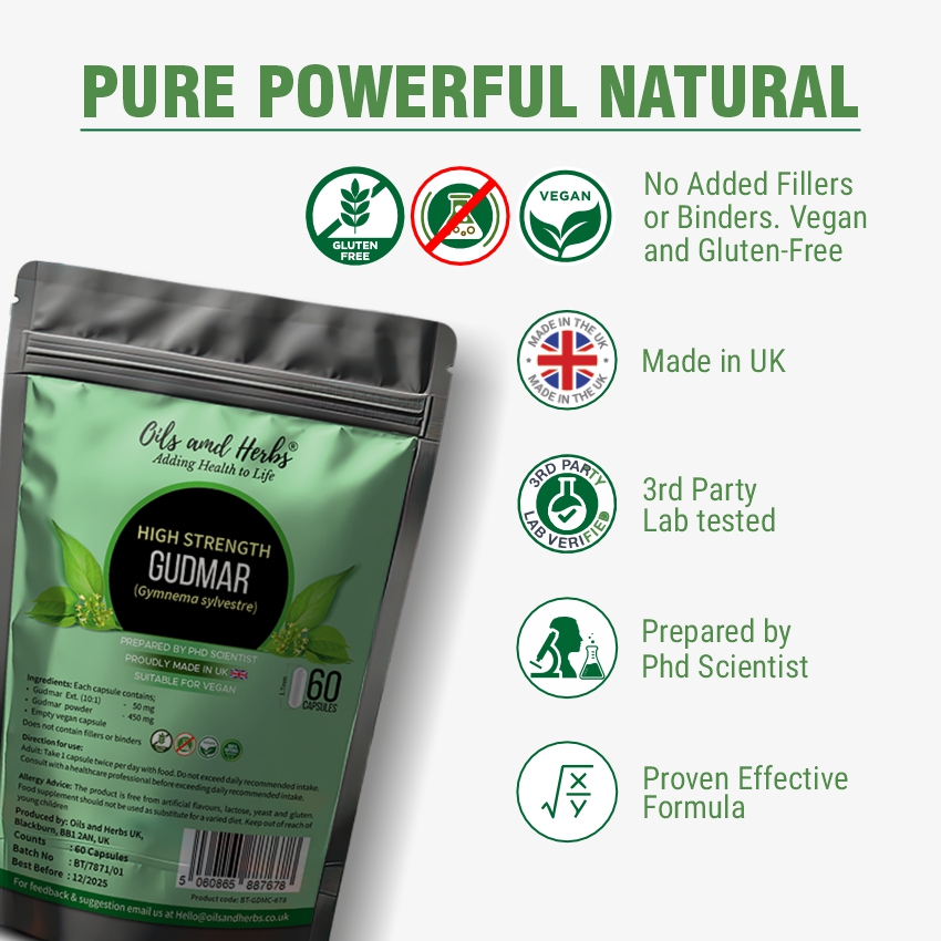 Contains gymnemic acids, the key active compounds that support glucose metabolism and help reduce sugar absorption.