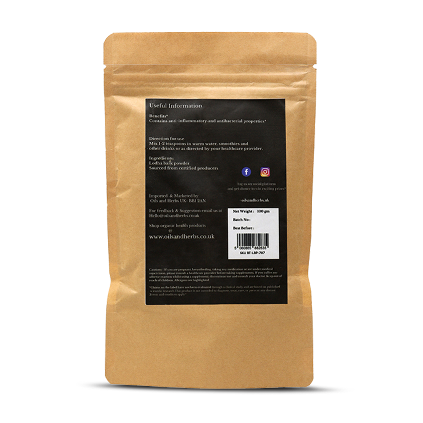 Lodhra Bark Powder is an herb that has been used in ayurvedic/herbal medicine for centuries and is native to India. The botanical name for it is Symplocos racemosa and it is commonly known in English as the Lodhtree.