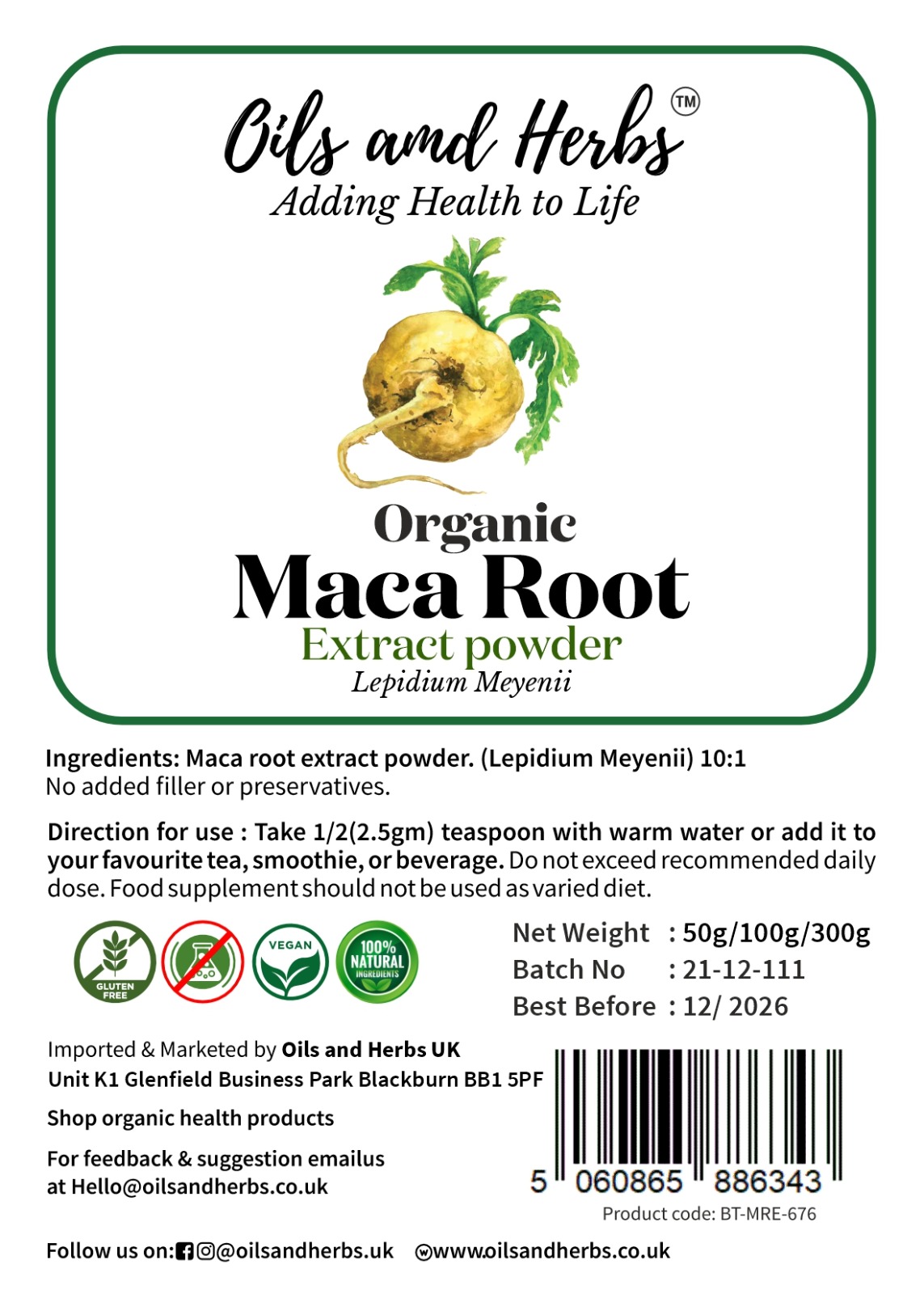 Our Maca Root Extract Powder is made from carefully selected Peruvian maca roots, extracted at a 10:1 concentration ratio. This means 10kg of dried maca root is used to produce 1kg of extract, offering a concentrated and versatile powder ideal for daily use.