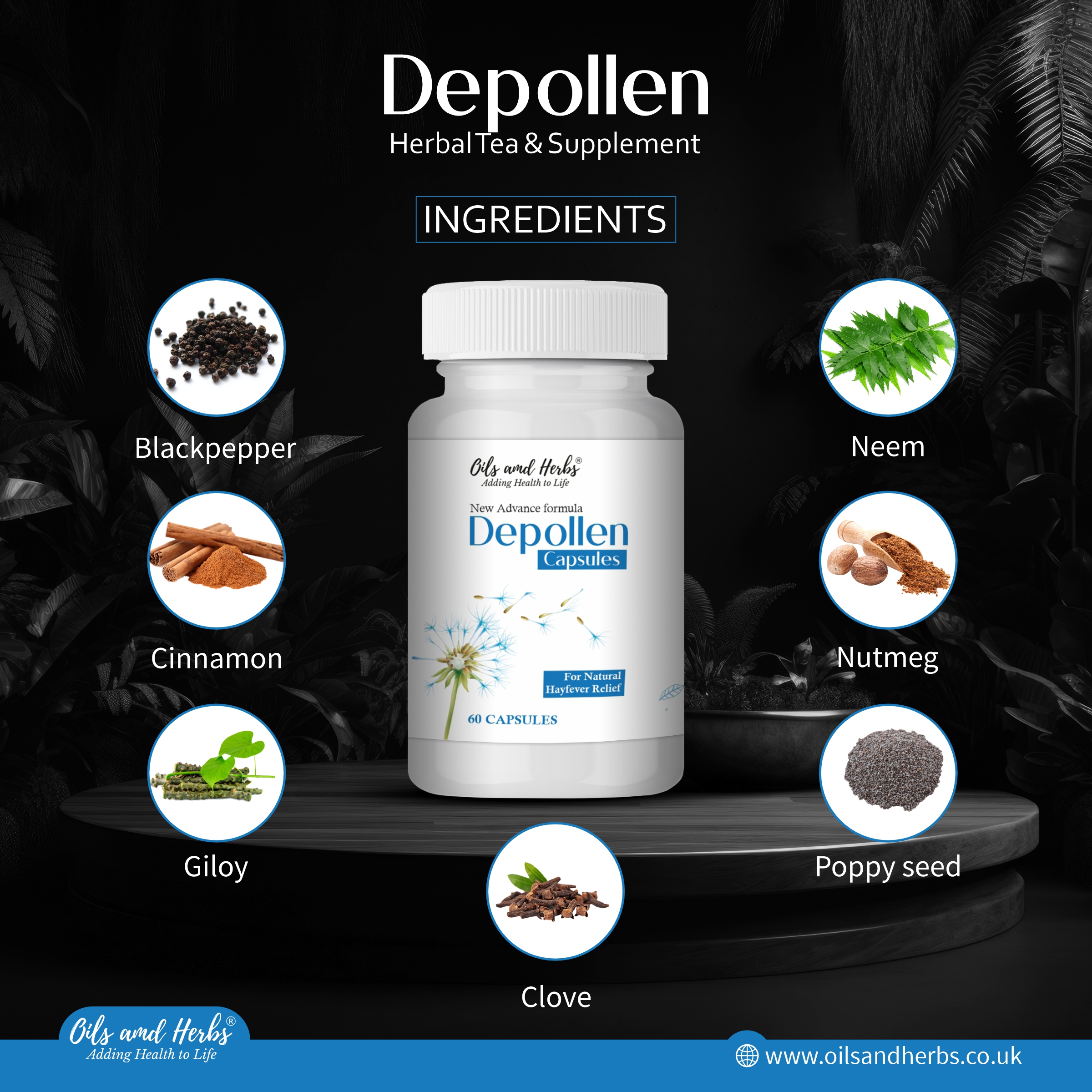 Our Depollen Tea and Supplements for Natural Hayfever Relief contains: