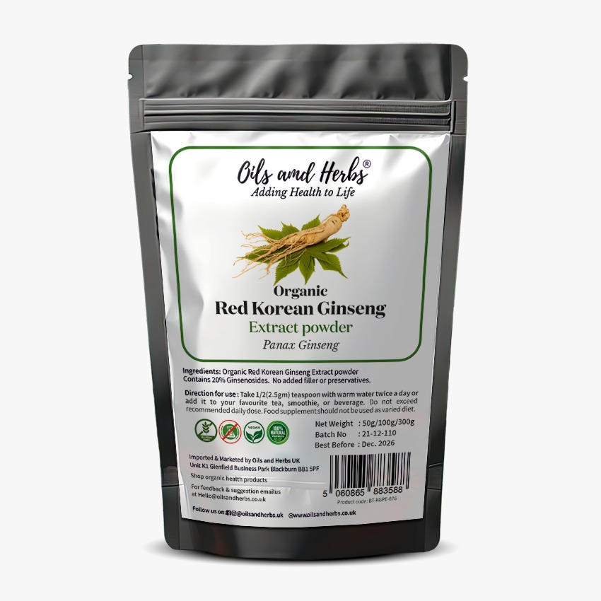 Our Red Ginseng Extract Powder is standardised to contain 20% ginsenosides, the key compounds that make Korean Ginseng highly valued in traditional herbal routines. Extracted from steam-treated, mature roots, this powder delivers purity, potency, and peace of mind.