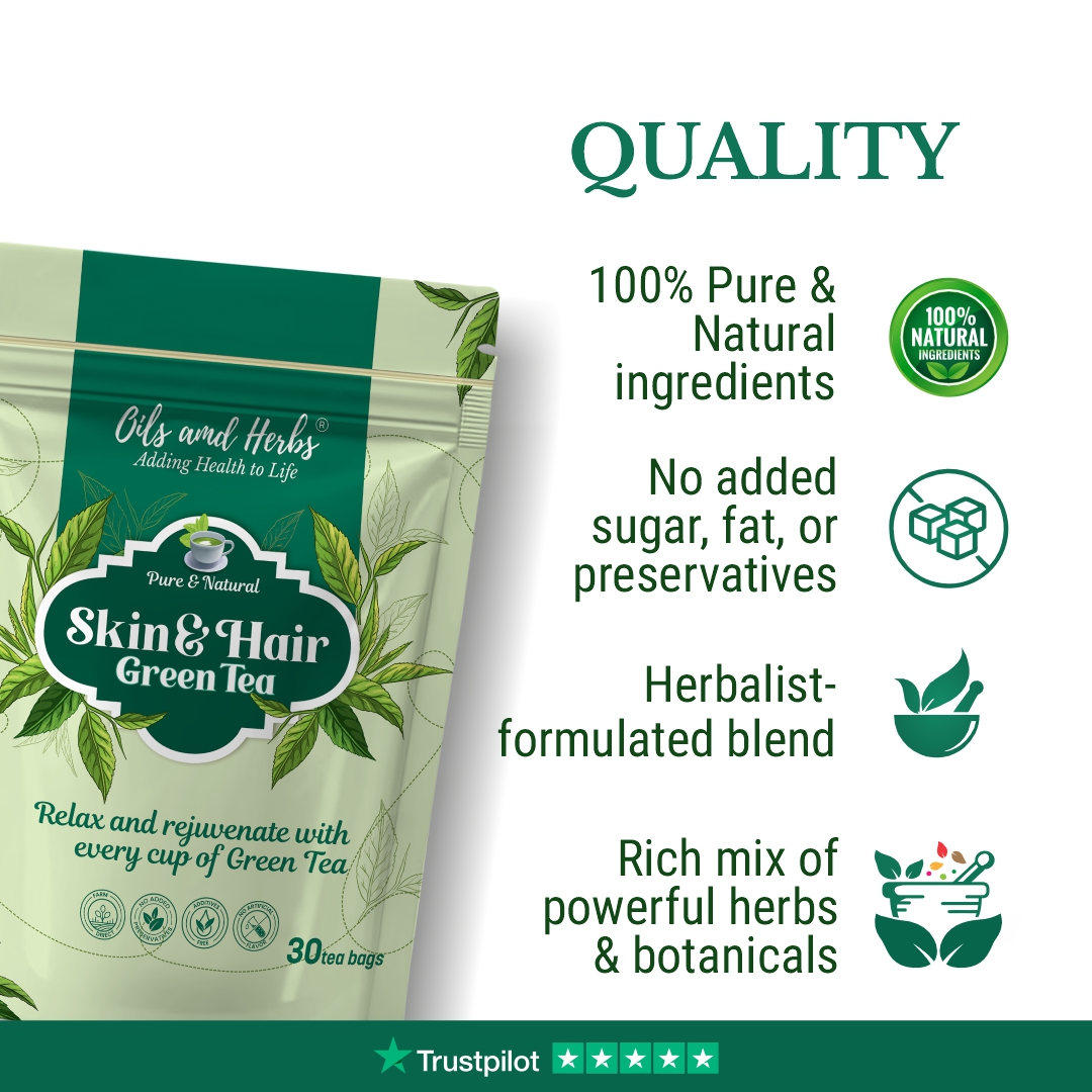 Glow from within with our Skin and Hair Tea, a carefully balanced herbal infusion made from time-honoured botanicals. This flavourful blend combines green tea and hibiscus with warming spices and unique Ayurvedic herbs like white musli, ashwagandha, and gokhru — all selected for their traditional use in beauty and wellness routines. Naturally energising and caffeine-rich, it’s the perfect addition to your daily self-care.
