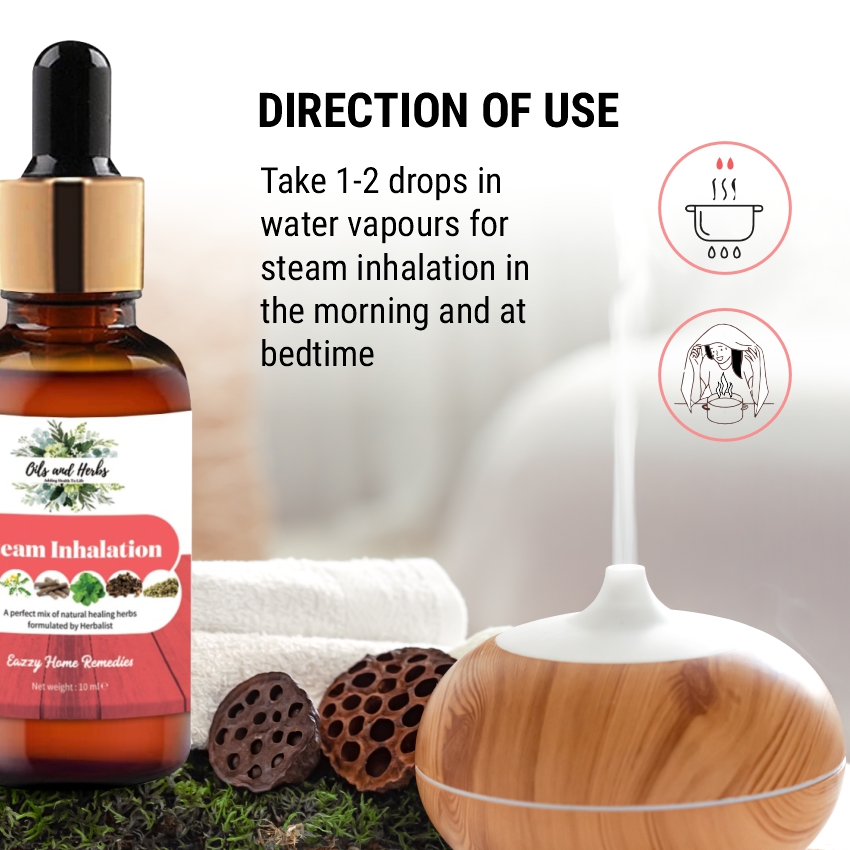 Take 1-2 drops in water vapours for steam inhalation in the morning and at bedtime