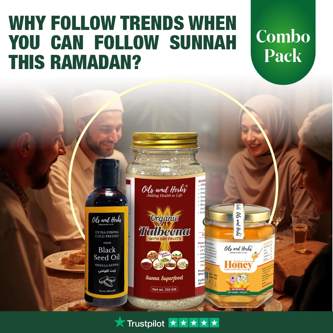 “Embrace the Sunnah tradition and elevate your Ramadan experience with our exclusive combo packs!” Order now and seize this special offer to enrich your Ramadan journey with the blessings of wholesome nourishment.
