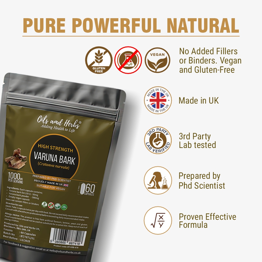 Varuna acts as a natural diuretic, which increases urine flow and helps flush out bacteria from the urinary tract, aiding in faster recovery from infections. I would definitely buy again.